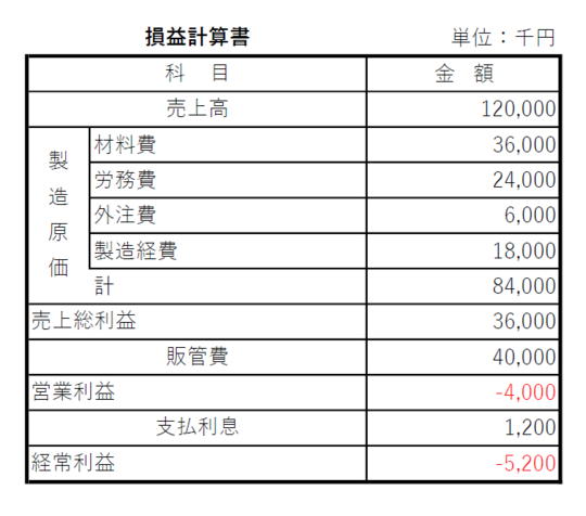 次の損益計算書があったとしましょう。