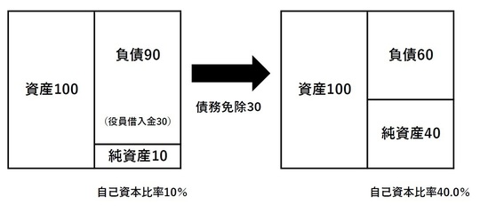 資金繰りが忙しい中小企業においては、経営者が自己の資金を投入していることがあります。この役員借入金という債務について返済を免除してもらうのです。これは増資よりも簡単です。