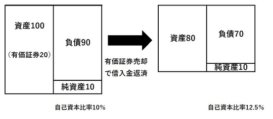 売却しても事業に関係がないのなら売却し借入金の返済をすれば資産は圧縮され、自己資本比率は改善されます。