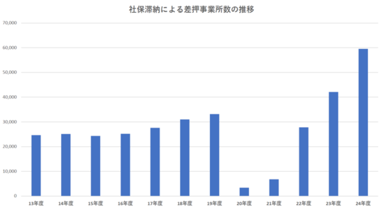 毎月支払分に未納分が上乗せされれば、さらに支払いが滞るケースが増加します。預金口座や資産の差し押さえにより、経営は行き詰まってしまい社会保険料倒産に至ります。